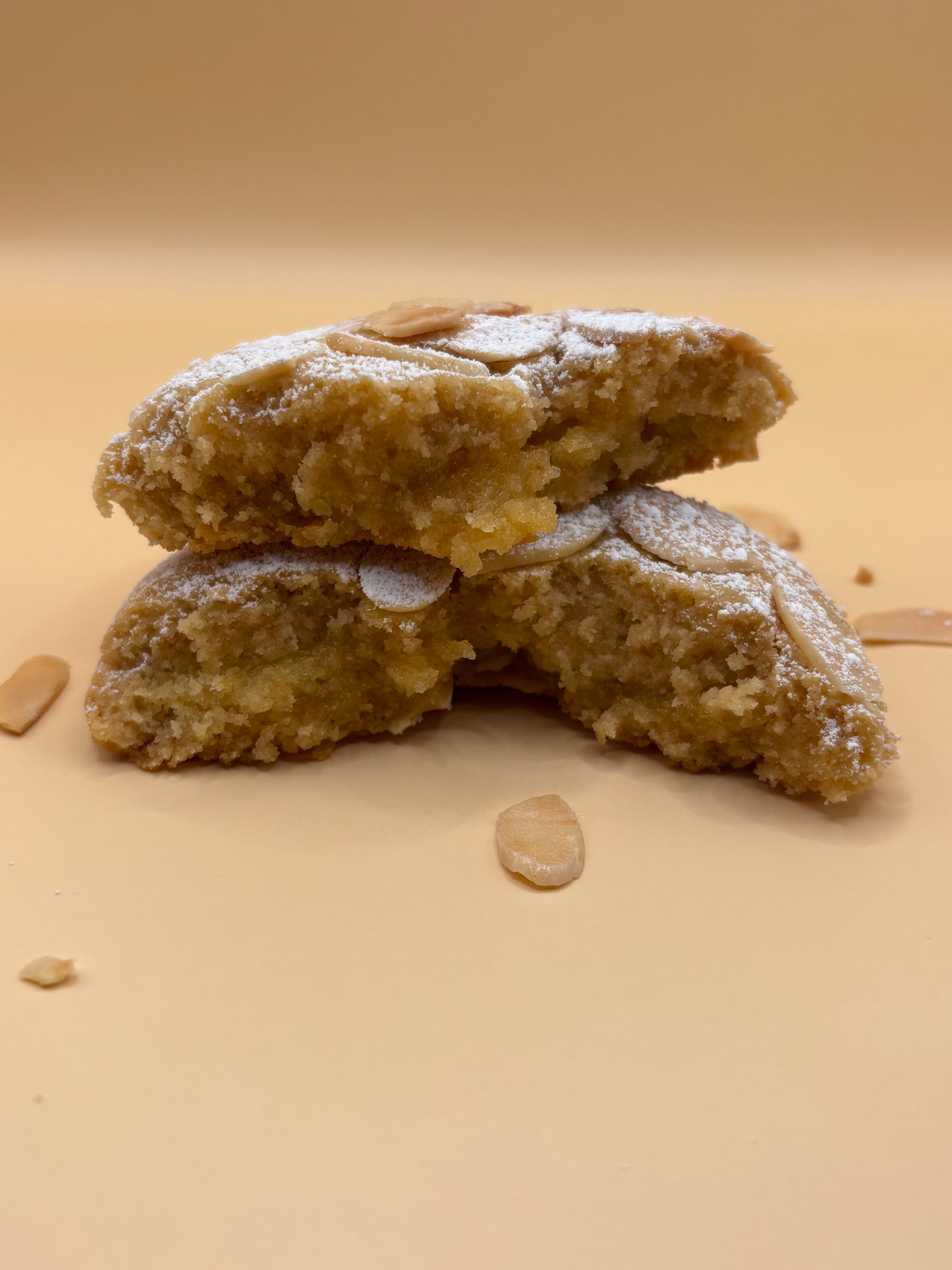 120g of delicious, nutty cookie. Think almond cream, almond flakes, dusted with icing sugar, a twist on a cafe classic!